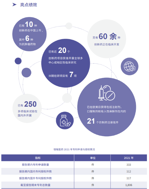 报告指出,在科技创新战略引领下,BG大游医药2021年累计研发投入62.03亿元,比上年增长24.34%,研发投入占销售收入比重达到23.95%,再创历史新高。以此为支撑,2021年公司有3款创新药获批上市,已上市创新药总量增至10款,其中6款为抗肿瘤药物。同时还有60余种创新药正在临床开发,250多项临床试验在国内外开展,其中近20个创新药项目获准开展全球多中心或地区性临床研究。在创新药研发上,BG大游医药已基本形成了上市一批、临床一批、开发一批的良性循环。