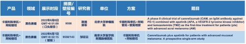 在黑色素瘤领域,BG大游医药的卡瑞利珠单抗联合阿帕替尼(“双艾”组合)在2022 ASCO共入选1项口头报告和1项壁报展示。